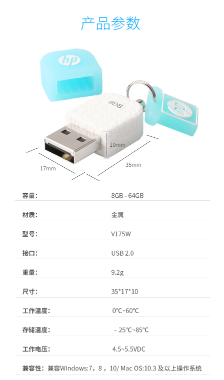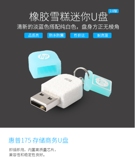 商品名称:惠普 HP V175WUSB2.032GB橡胶雪糕迷你U盘