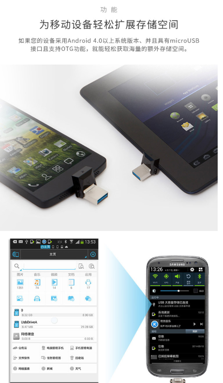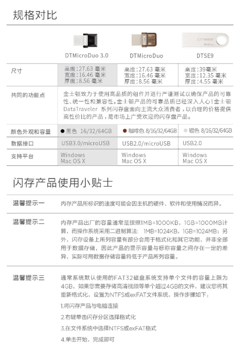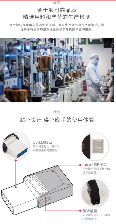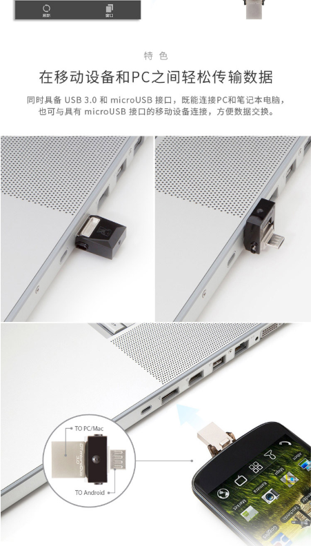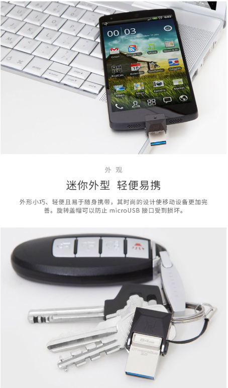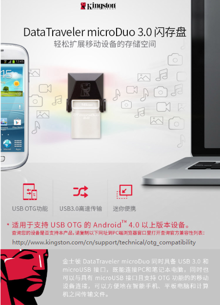 商品名称:金士顿 KINGSTON DTDUO3 16GB 超便携 OTG USB3.0 MICRO-USB 和 USB双接口手机U盘