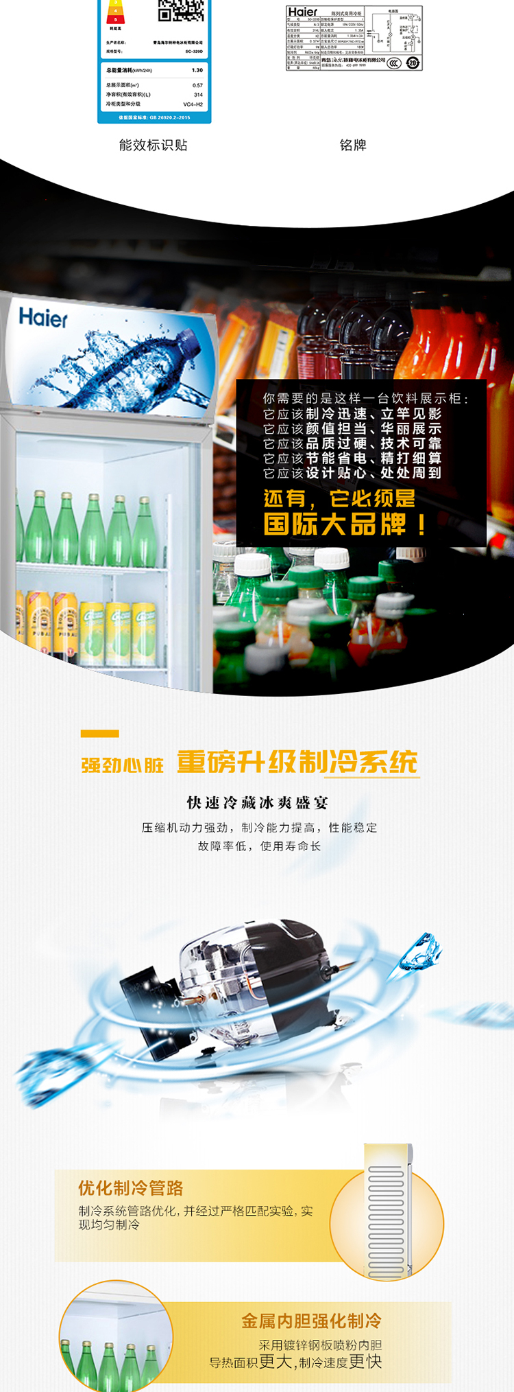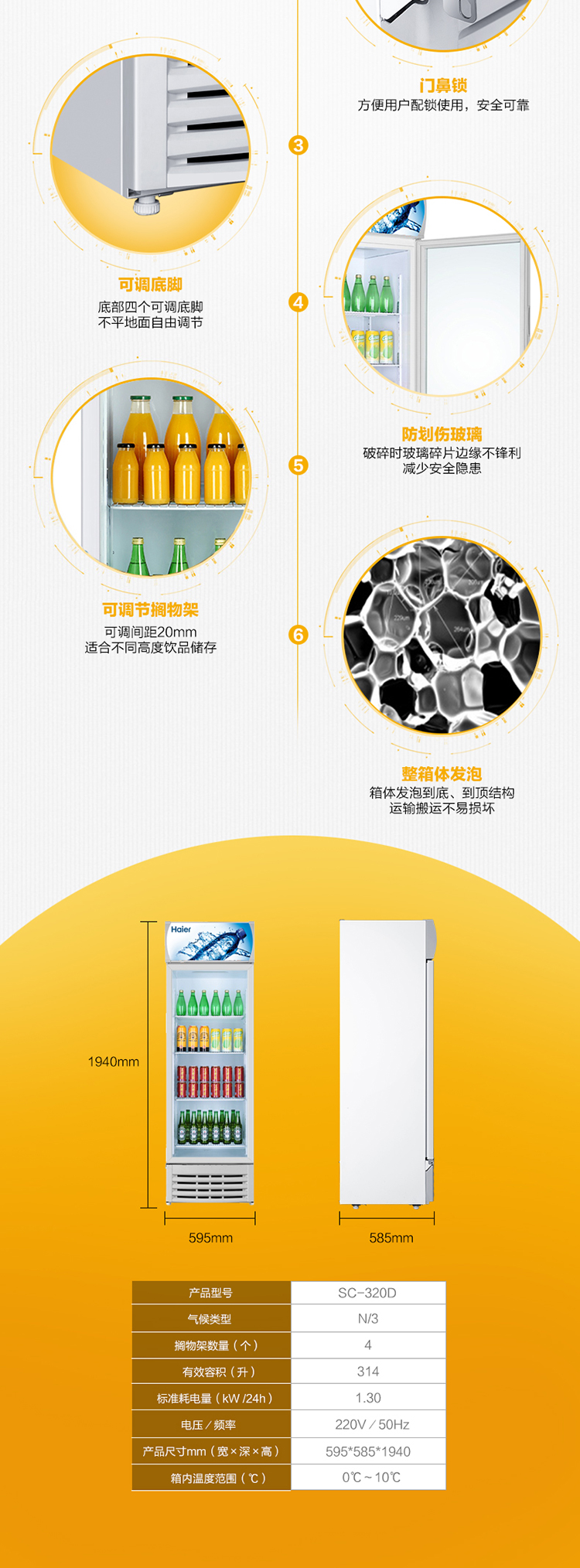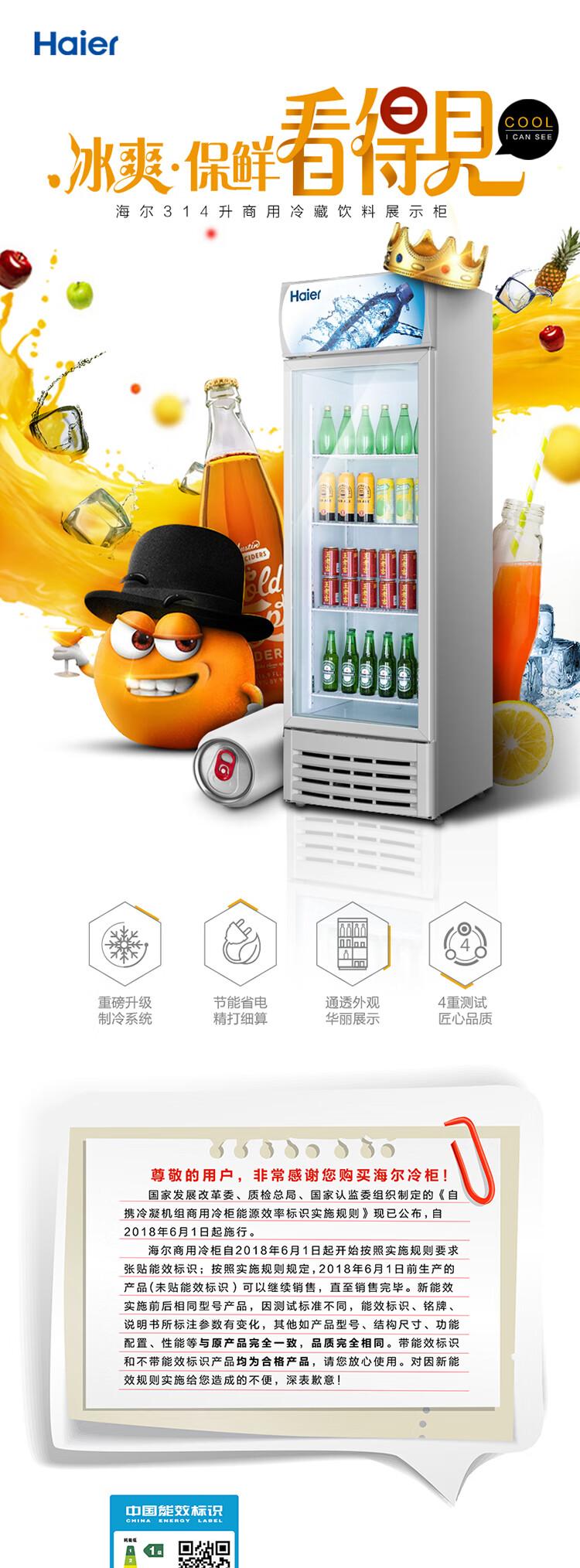 商品名称:海尔 HAIER SC-320D 314升 定频 机械控温 立式展示柜