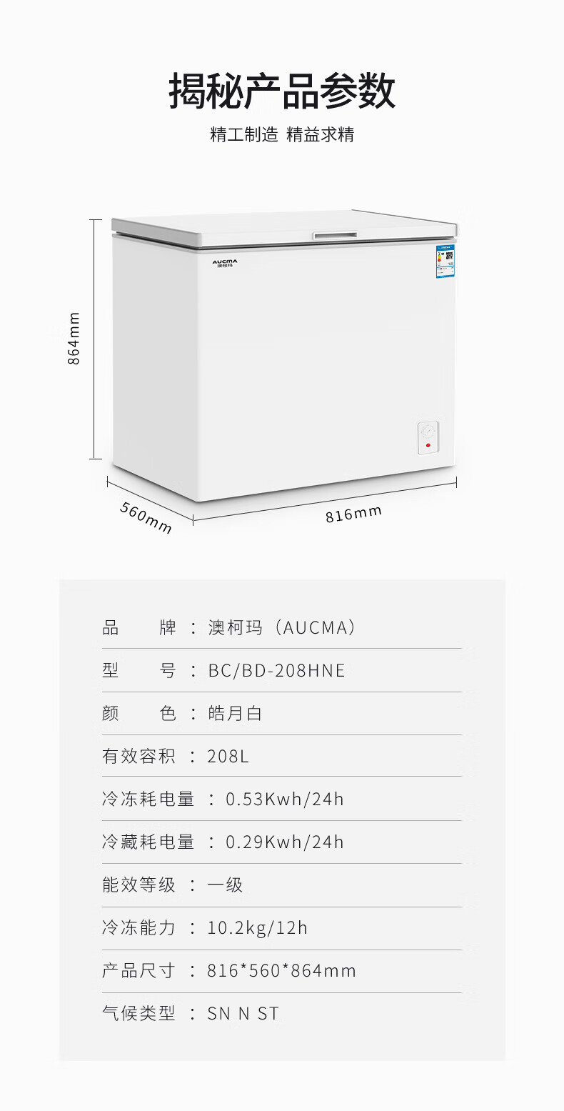 商品名称:澳柯玛 AUCMA BC/BD-208HNE 208升 定频 机械控温 卧式冷柜