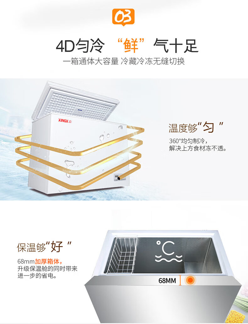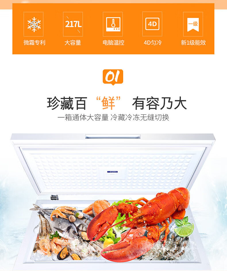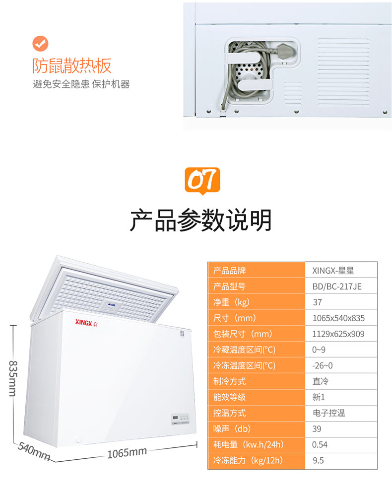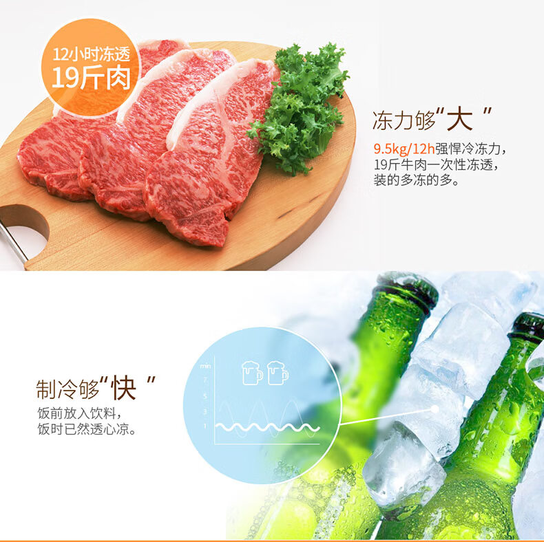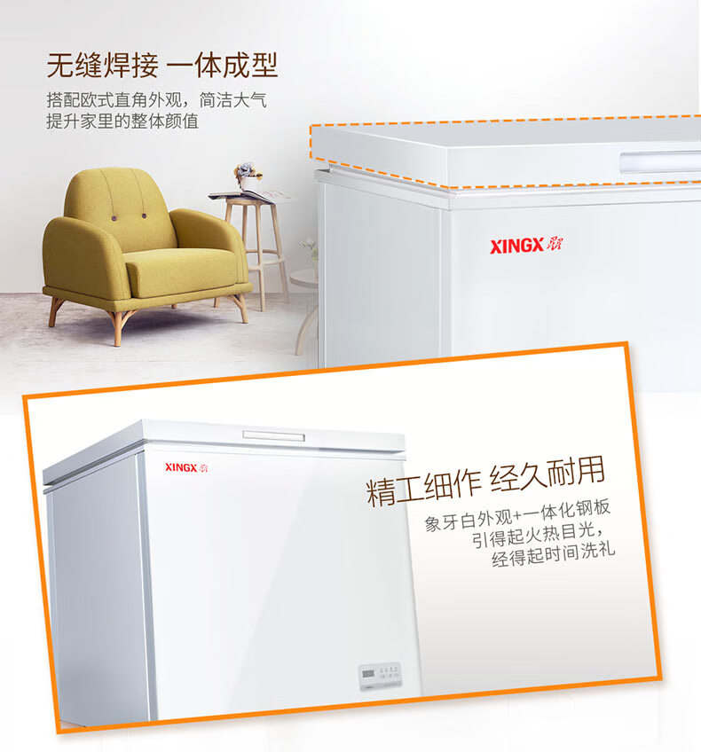 商品名称:星星 XINGX 217升 家用冰柜 微霜系统 欧式直角 左冷冻右冷藏 双温双箱冰箱 BCD-217JNE