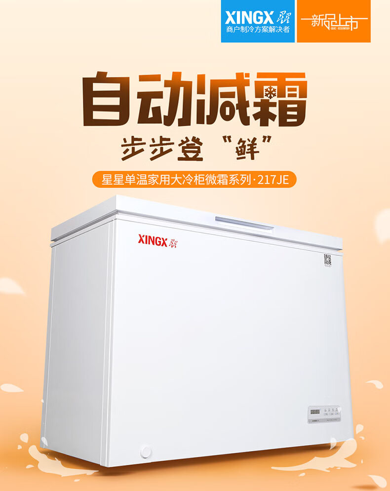 星星 XINGX 217升 家用冰柜 微霜系统 欧式直角 左冷冻右冷藏 双温双箱冰箱 BCD-217JNE