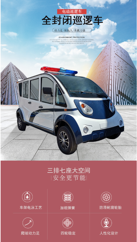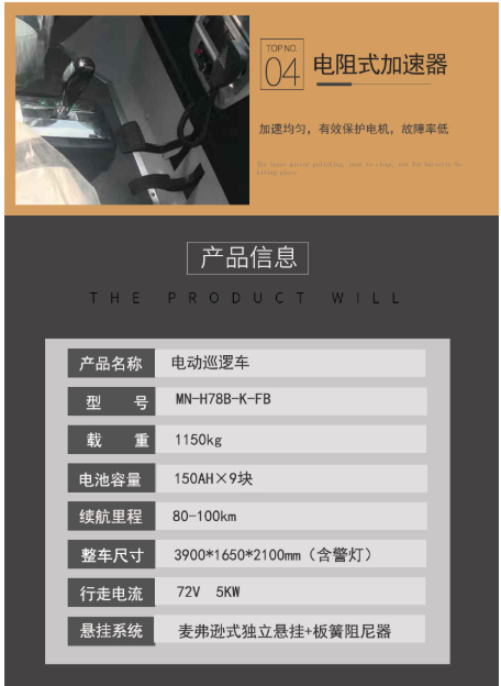 商品名称:明诺 MINGNUO MN-H78B-K-FB 封闭式 三排6-8座 电动巡逻车