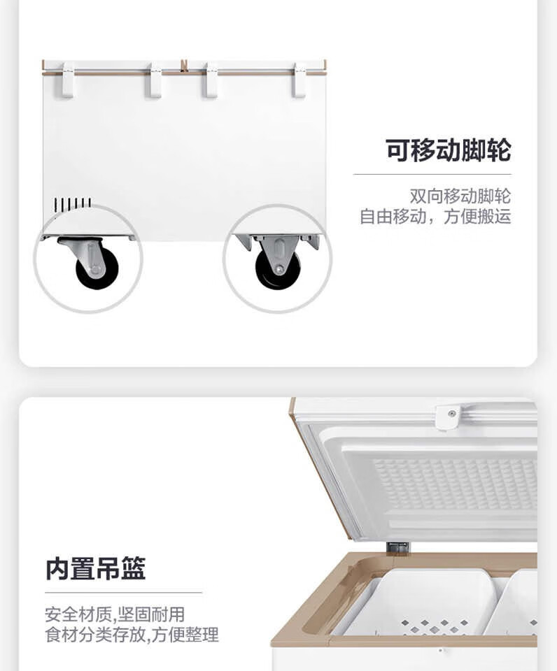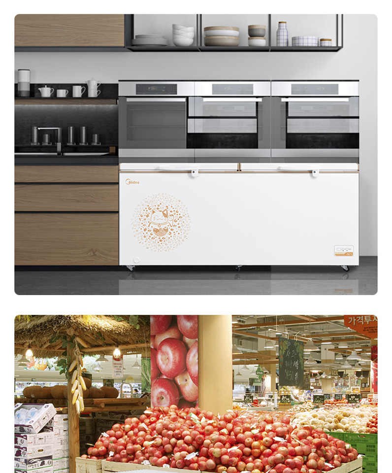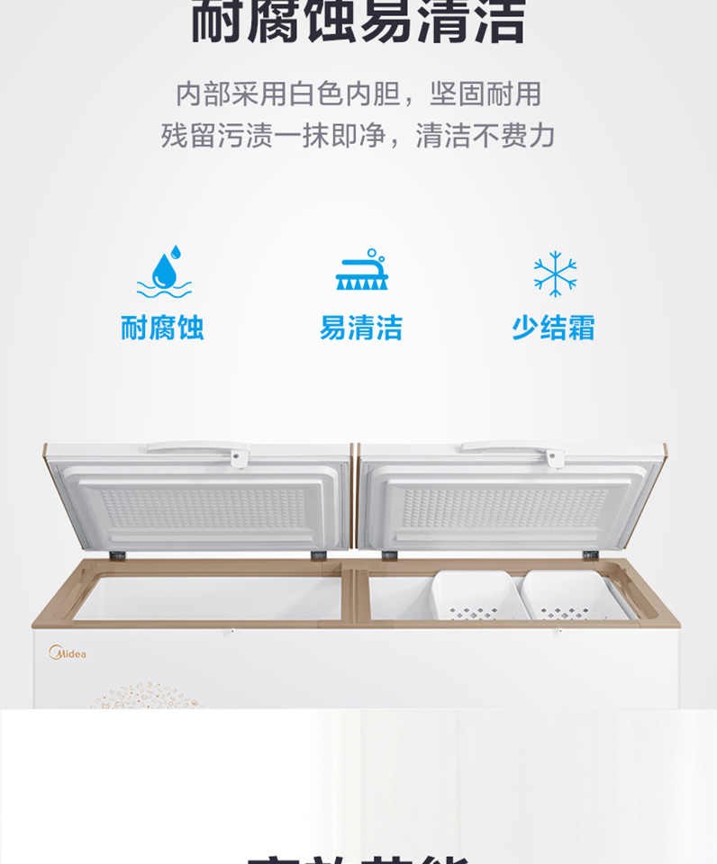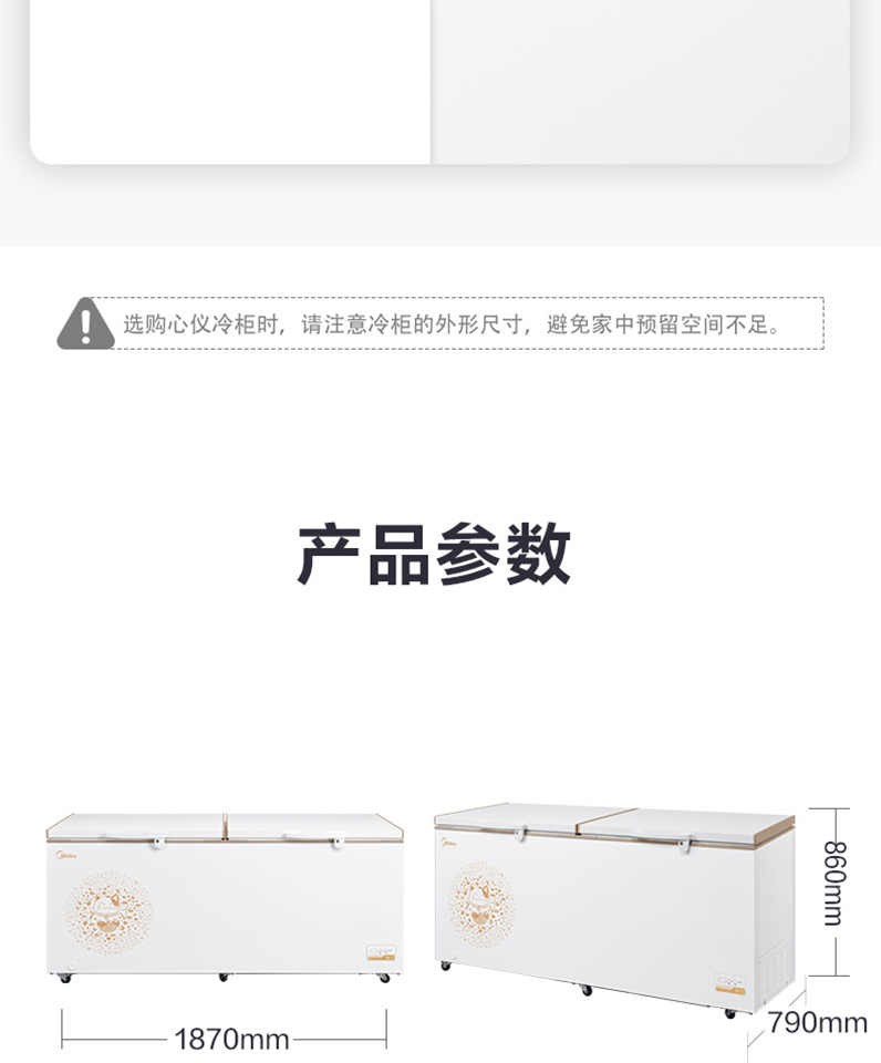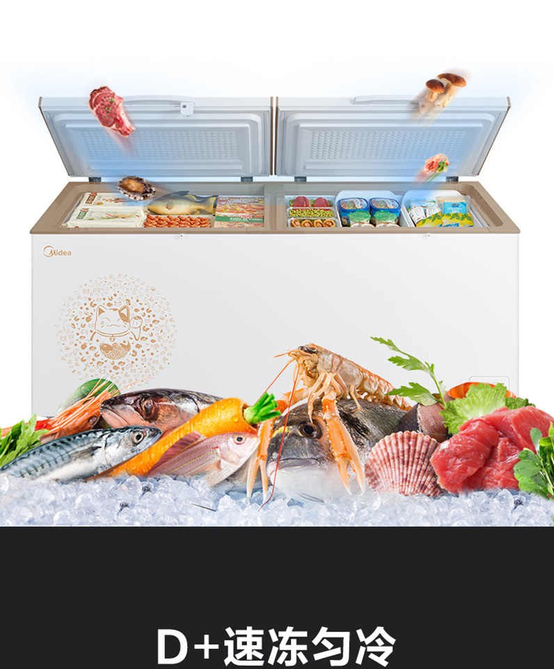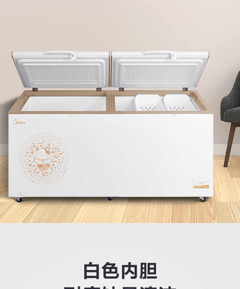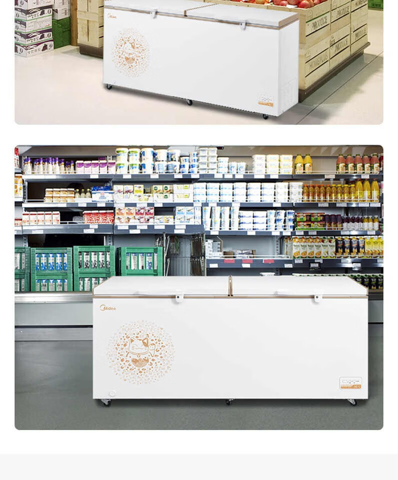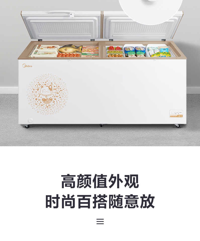 美的 MIDEA 568升 电脑控温 商用冰柜 大冷冻柜 冷冻冷藏转换冷柜 卧式冰箱(时尚金) BD/BC-568DKEM