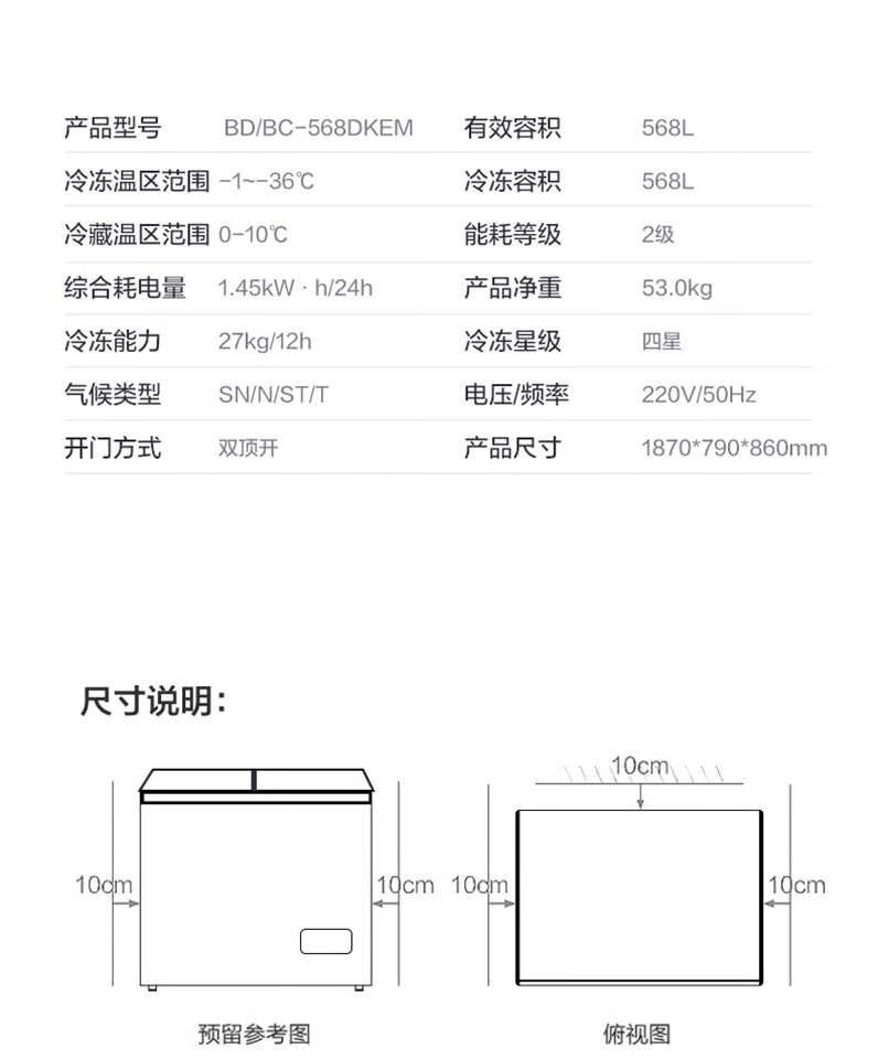 商品名称:美的 MIDEA 568升 电脑控温 商用冰柜 大冷冻柜 冷冻冷藏转换冷柜 卧式冰箱(时尚金) BD/BC-568DKEM