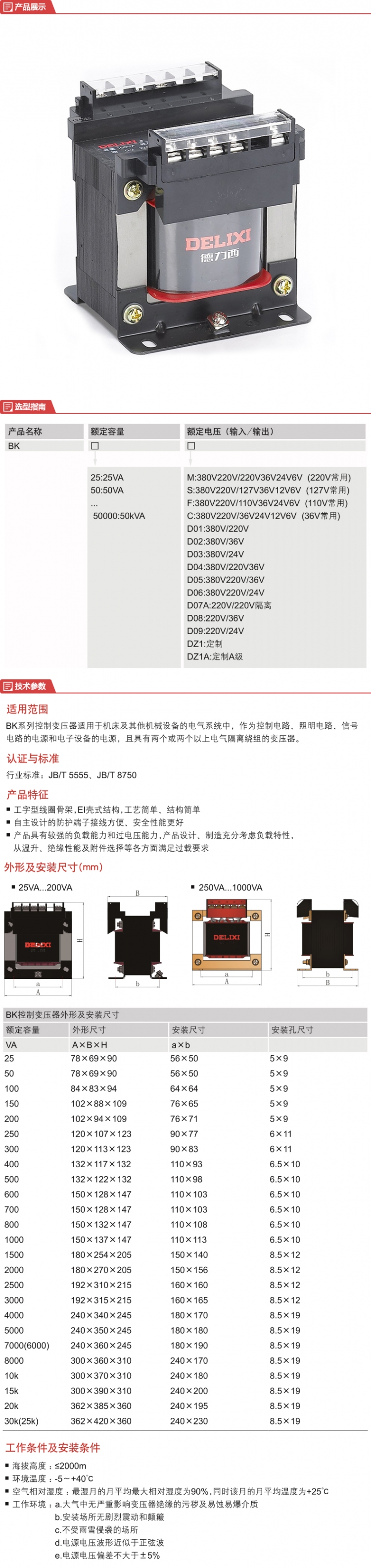 德力西电气 DELIXI ELECTRIC BK-300VA 380V/220V 控制变压器