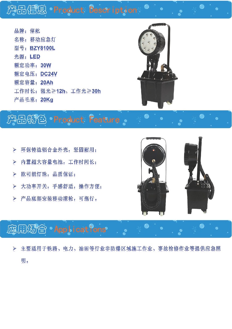 商品名称:倬屹 BZY8100L 大功率防爆工作灯(计价单位:个)