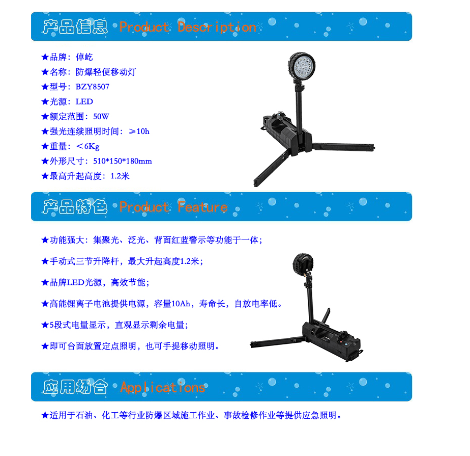 商品名称:倬屹 BZY8507 防爆轻便移动灯(计价单位:个)