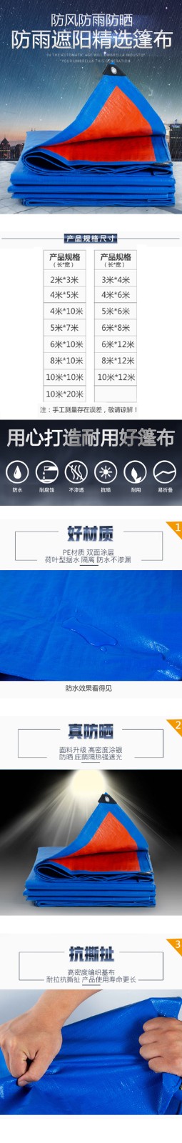 商品名称:(防风防汛)晟泰邦 STB0291加厚彩条布防雨布PE塑料布 2米*3米 (单位:张)