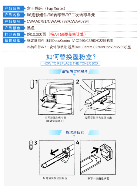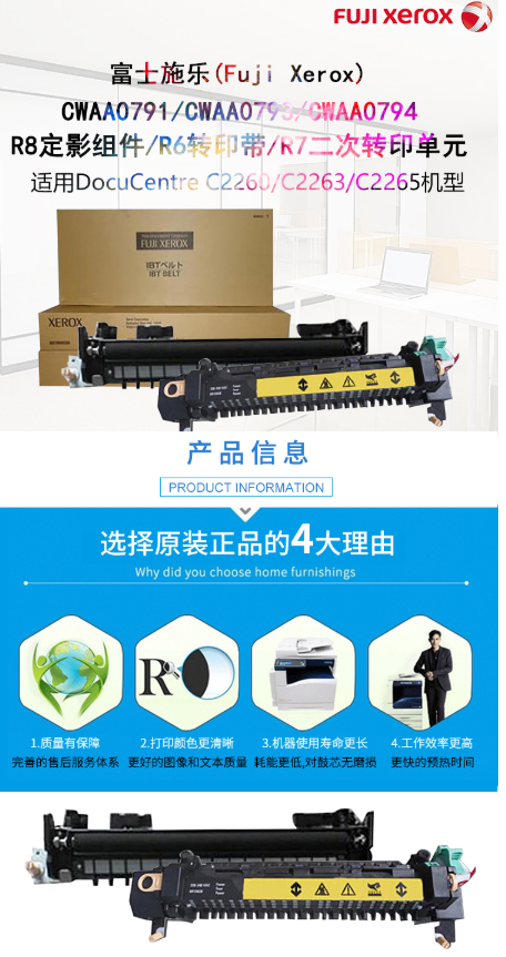 商品名称:富士施乐CWAA0791原装R8定影组件 (适用DocuCentre-IV C2260/C2263/C2265机型) 约100000页(单位:个)