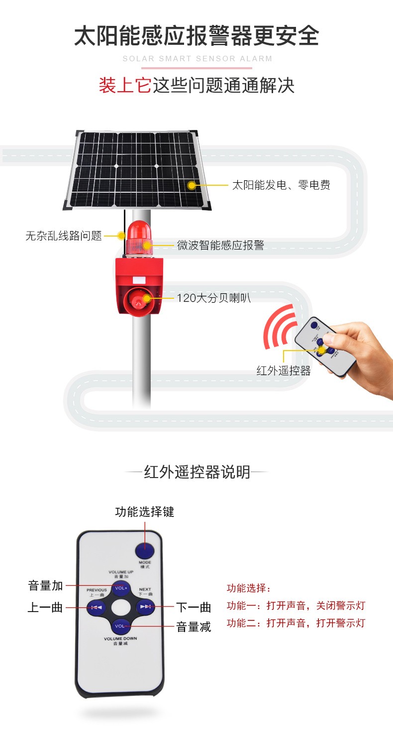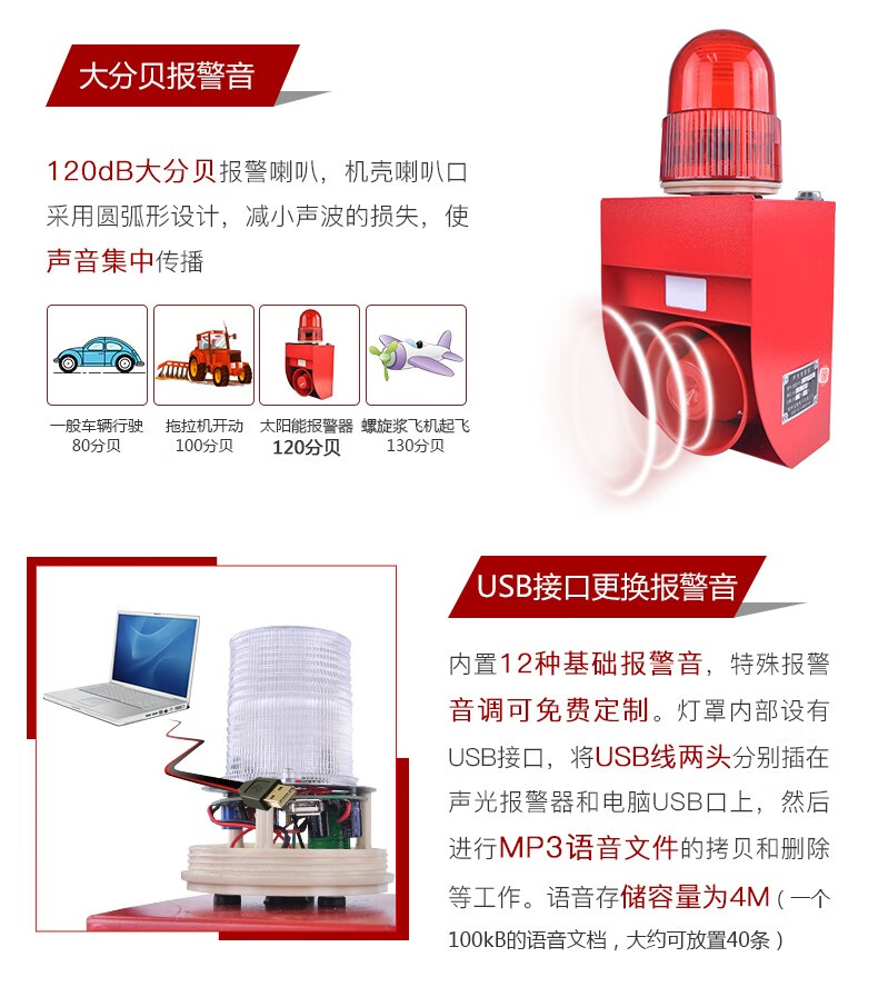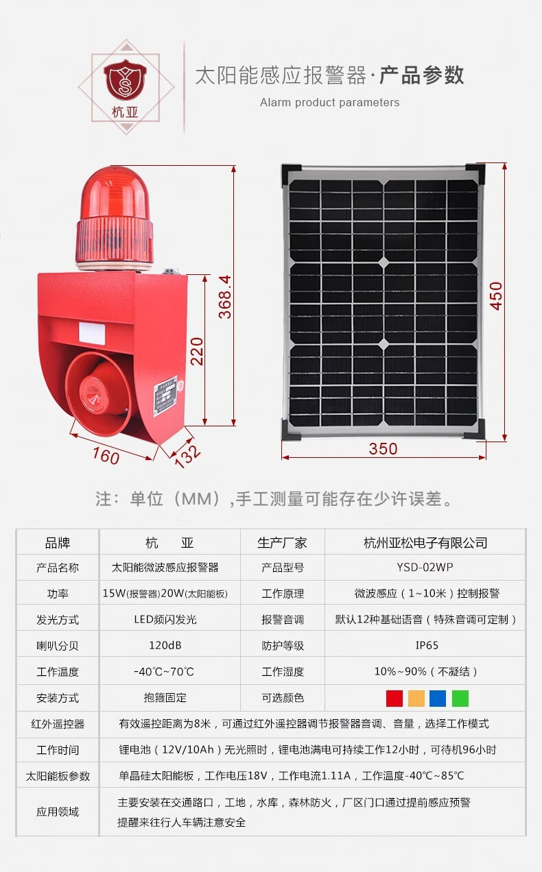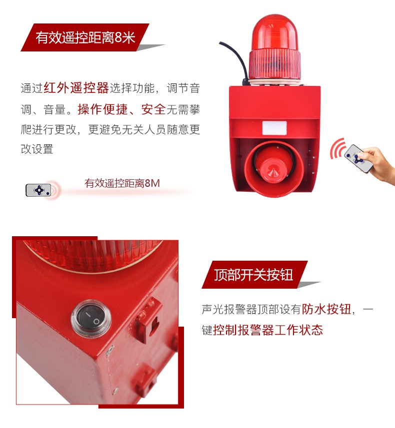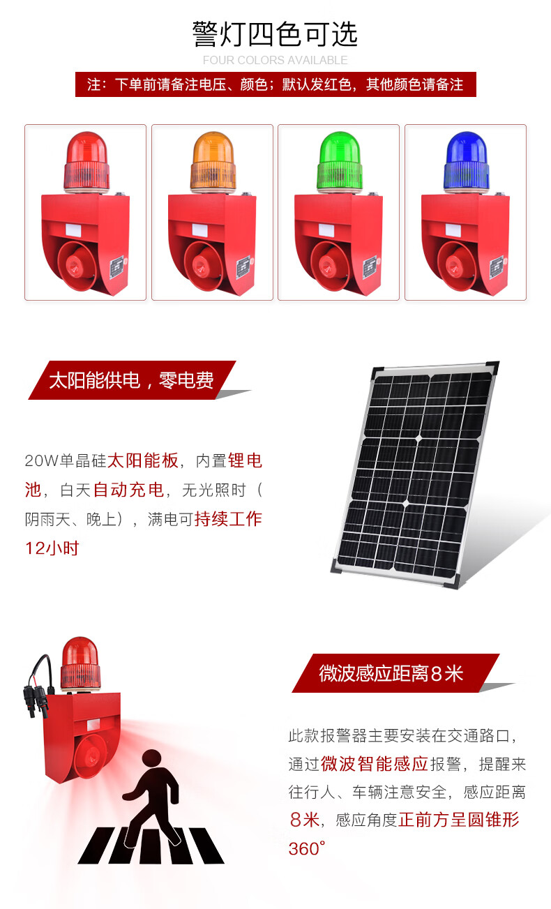 商品名称:杭亚YSD-02WP超声闪光警示灯语音 声光警报器 户外安全语音提示红色(单位:台)