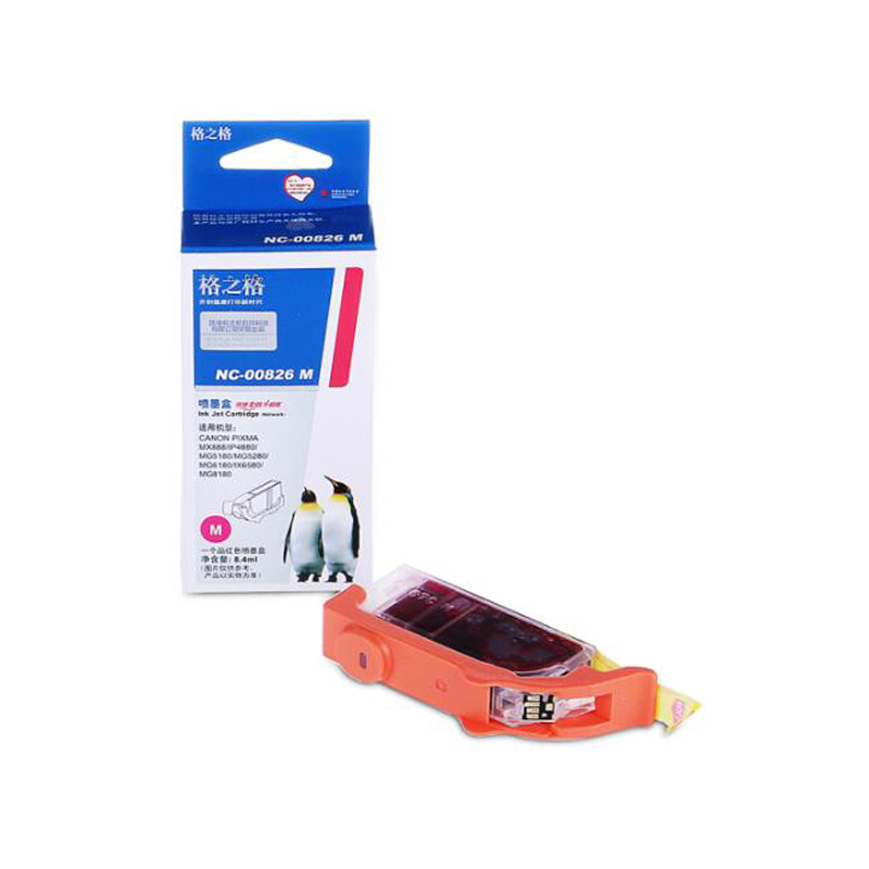 商品名称:格之格NC-00826M红色墨盒CLI-826M适用佳能IP4980 G5180 MG6280 G6180 MG8180 MX888 IX6580打印机墨盒红色普通装(计价单位:支)