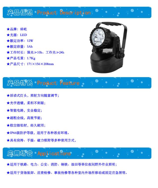 倬屹BZY7310A/LZ轻便式强光灯12W 5Ah(计价单位:个)