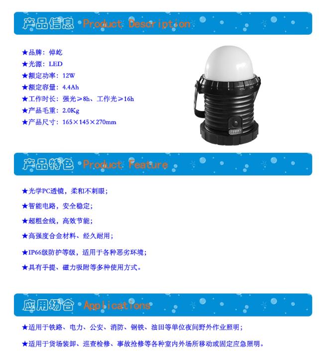 商品名称:倬屹BZY7311A/N便携式强光灯12W 4.4Ah(计价单位:套)
