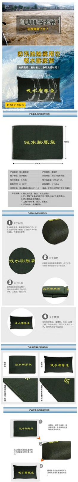 商品名称:和讯科技ZX038应急防汛防洪吸水膨胀快速堵水沙袋墨绿40mm*60mm(计价单位:个)