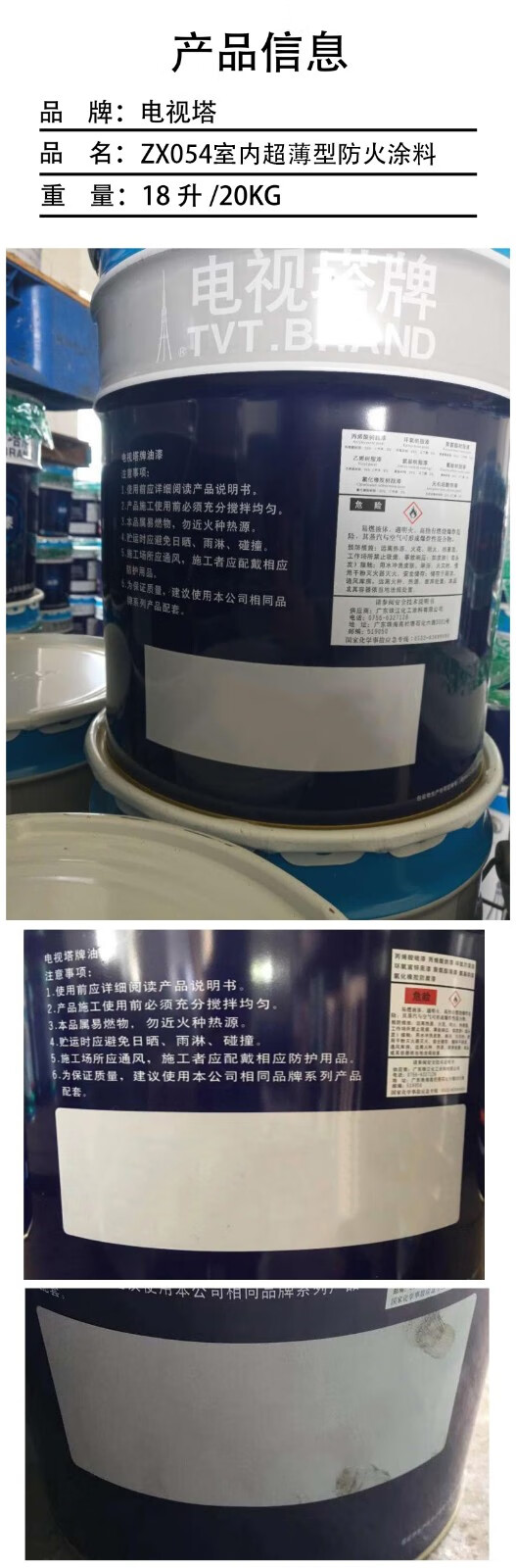 商品名称:电视塔 ZX054室内超薄型防火涂料18升/20KG(计价单位:桶)