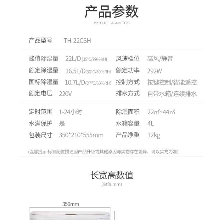商品名称:仟井(ZX)TH-22CSH除湿机抽湿机除湿器白色22L(计价单位:台)