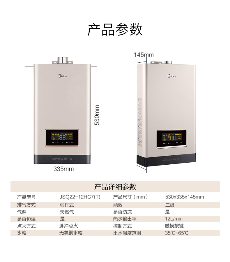 商品名称:美的 MIDEA JSQ22-12HC7 12升 燃气热水器 天然气