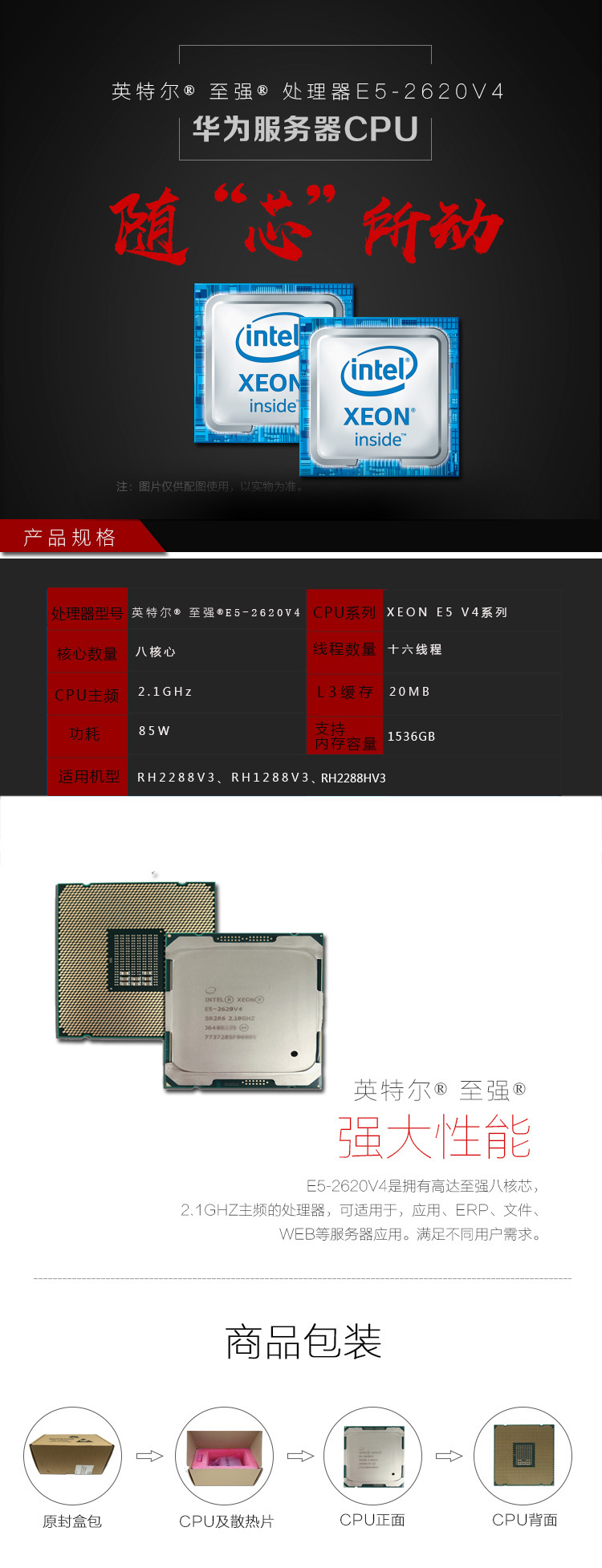 华为 HUAWEI 服务器英特尔至强E5-2620V4(2.1GHZ/8-CORE/20MB/85W)处理器(带散热器)