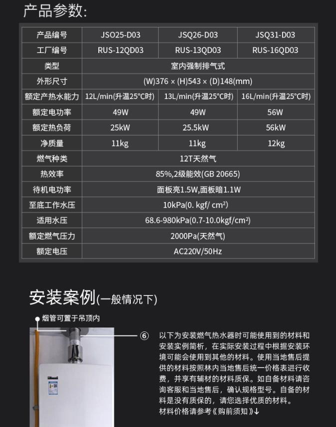 商品名称:林内 RINNAI 12升 零温差感恒温 燃气热水器RUS-12QD03(天然气)(JSQ25-D03)