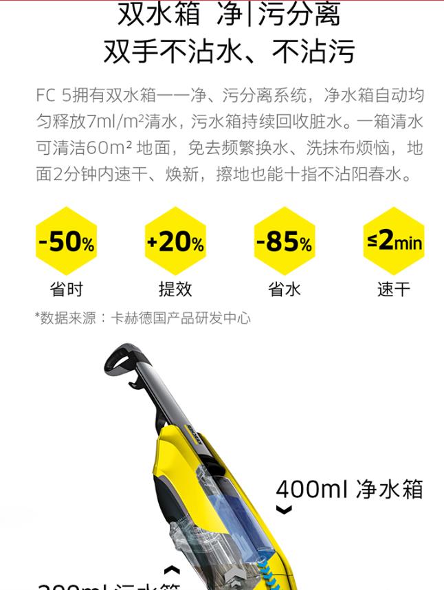 商品名称:卡赫 KARCHER FC5+SC4 清洁机拖地机组合两件套(自清洁擦地机+蒸汽清洁机)