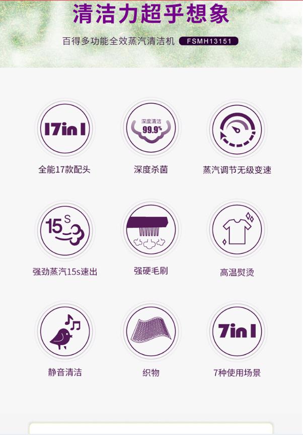 商品名称:百得 BLACK&DECKER 蒸汽拖把布家用多功能清洁机电动拖把一体擦地机FSMH13151SM