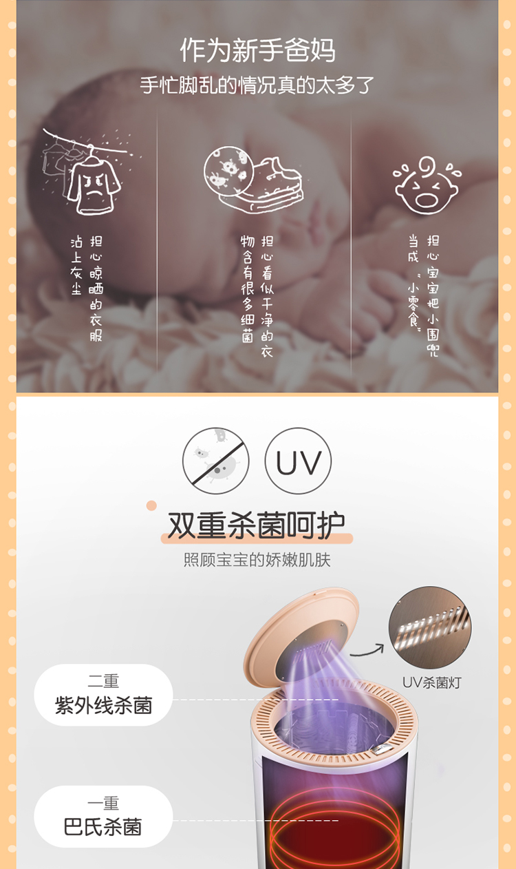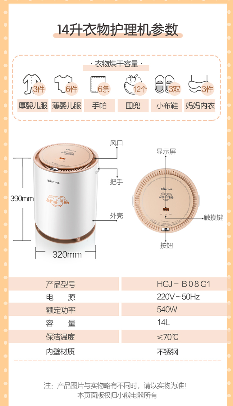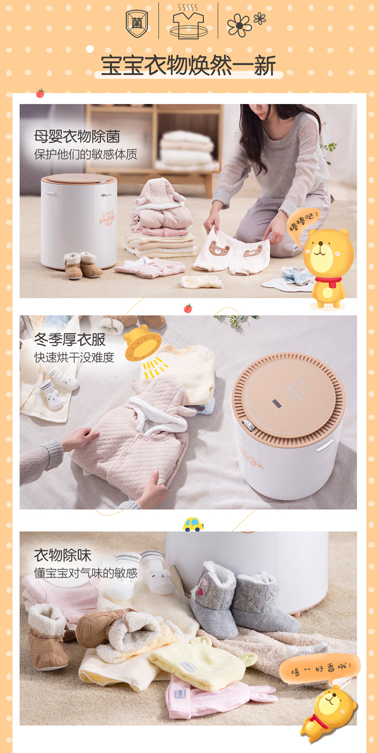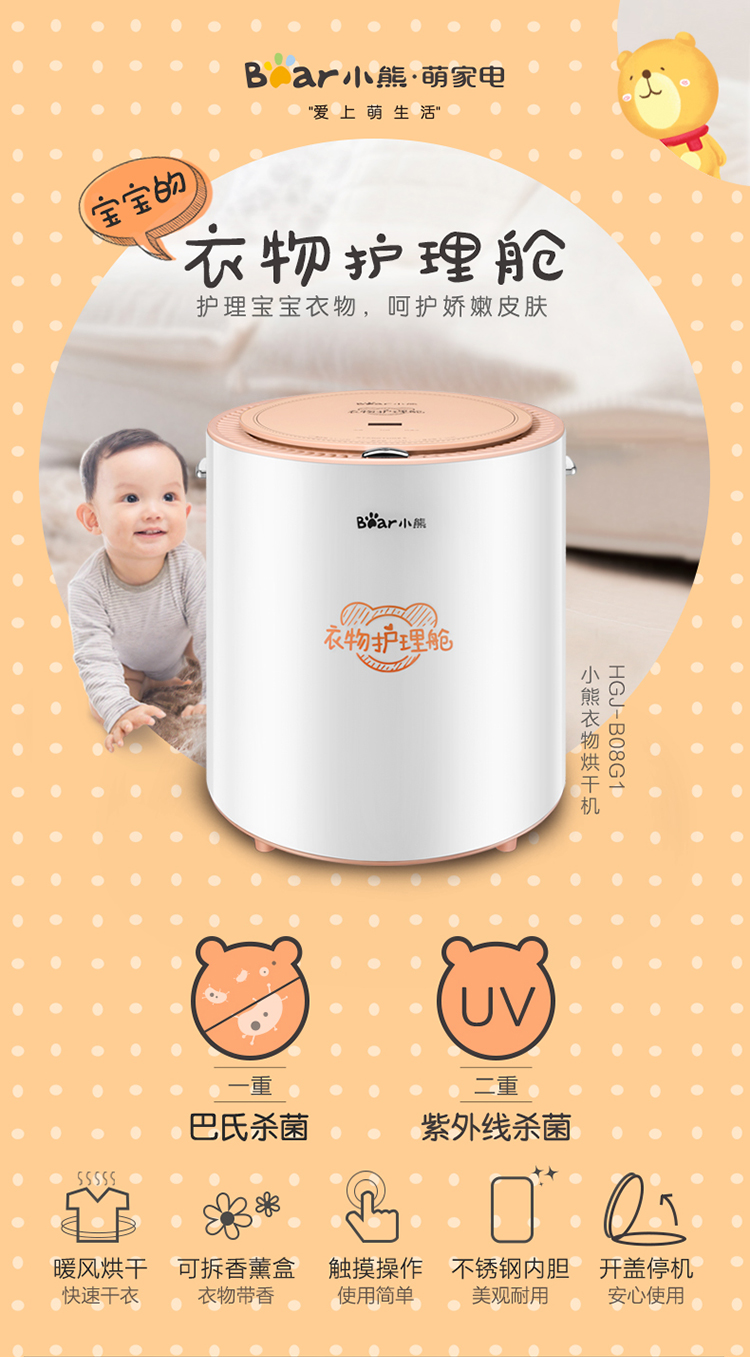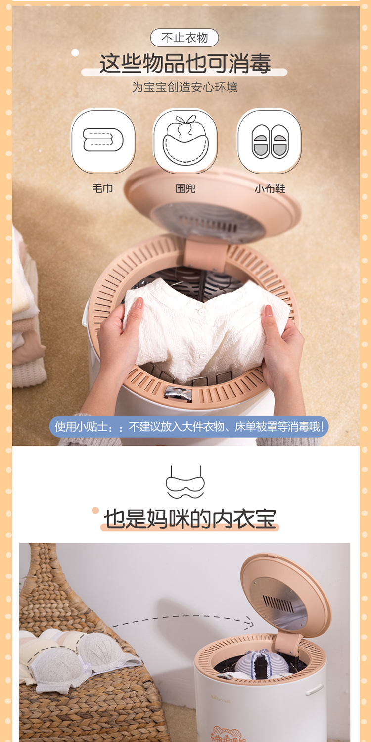 商品名称:小熊 BEAR 干衣机衣服烘干机宝宝衣物消毒机/母婴衣物消毒机双重杀菌衣服护理舱家用14L容量HGJ-B08G1