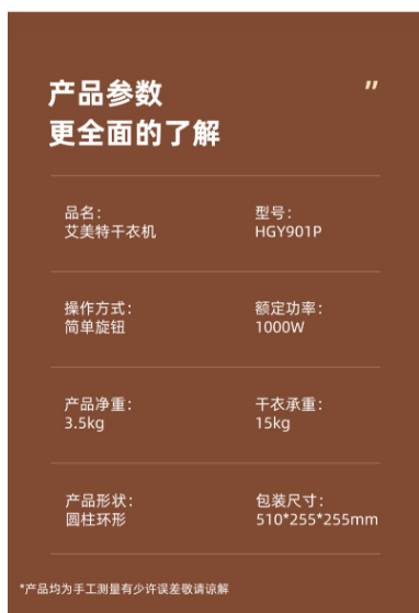 商品名称:艾美特 AIRMATE HGY901P 干衣机 10KG