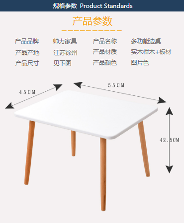 商品名称:帅力 SL17035C7 茶几边桌 实木腿北欧简约小茶桌子床上小炕桌飘窗桌 小号白色