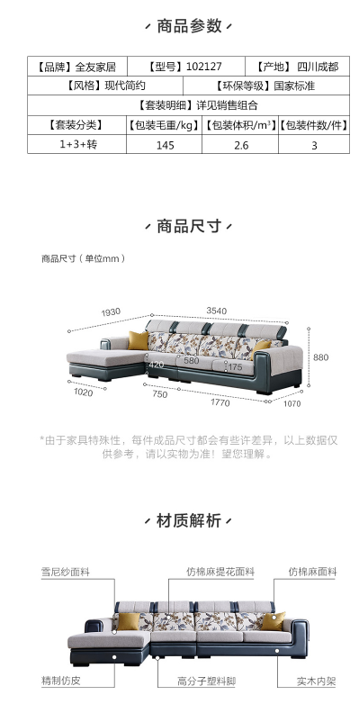 商品名称:全友 QUANU 尺寸354×58×17.5 沙发
