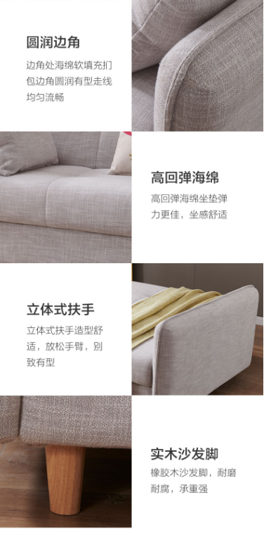 商品名称:掌上明珠家居 M&Z ESC552 简约布艺沙发 222X99X83