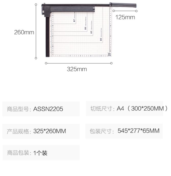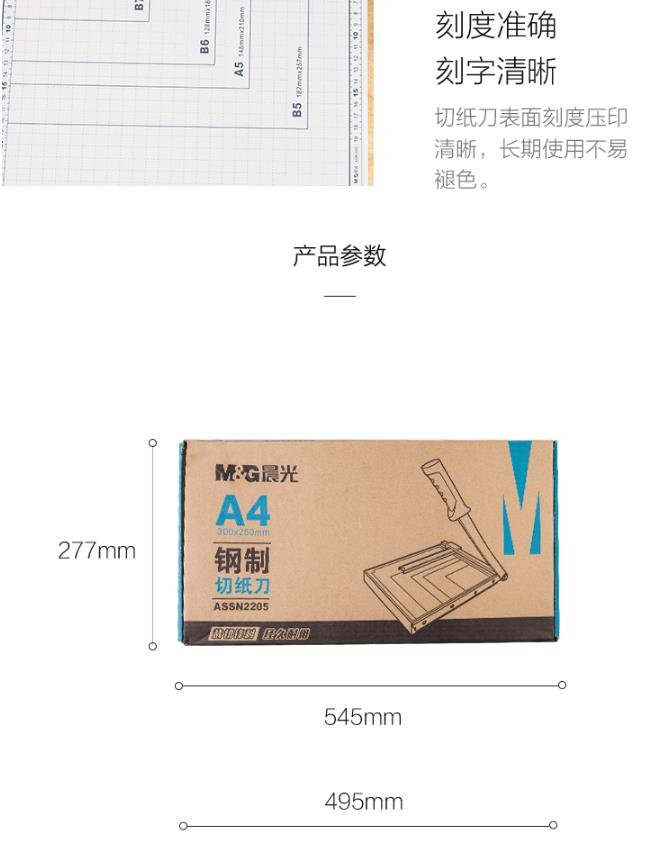 商品名称:晨光 M&G A4钢制切纸刀切纸机裁纸机裁纸刀300*250MM ASSN2205