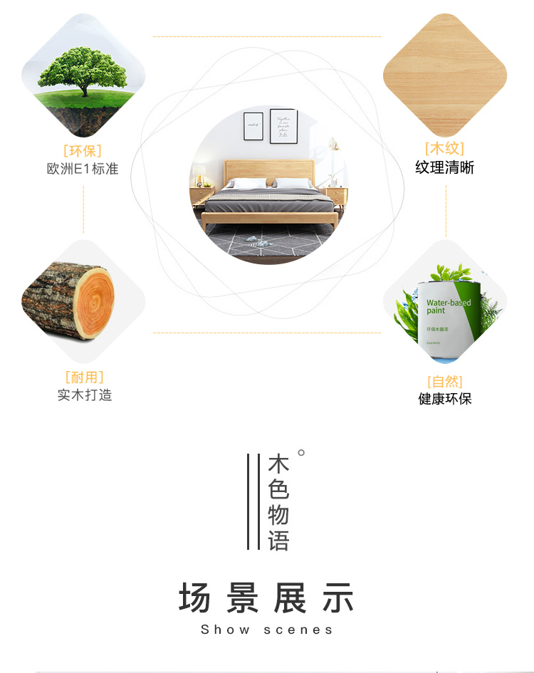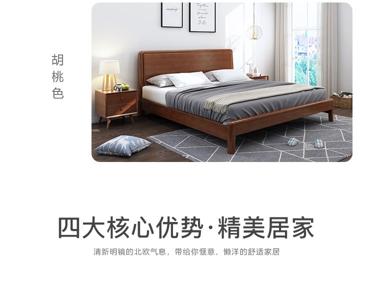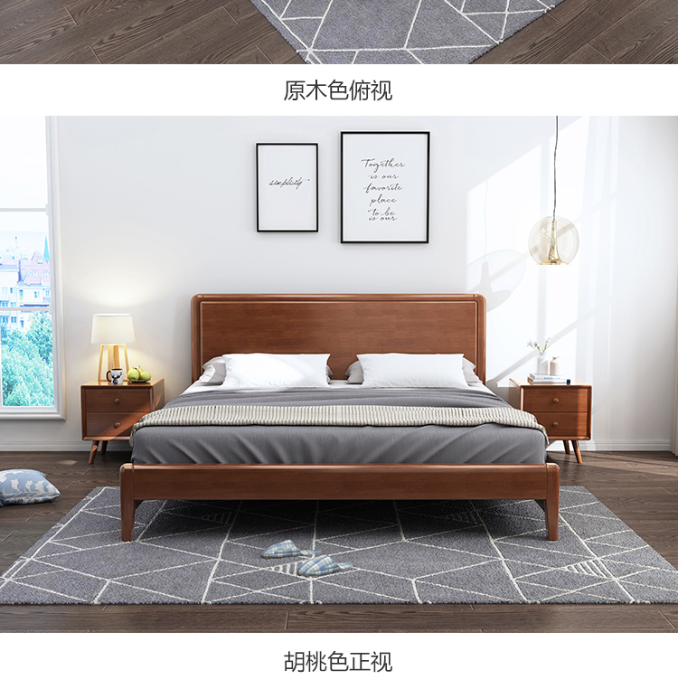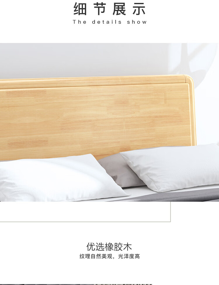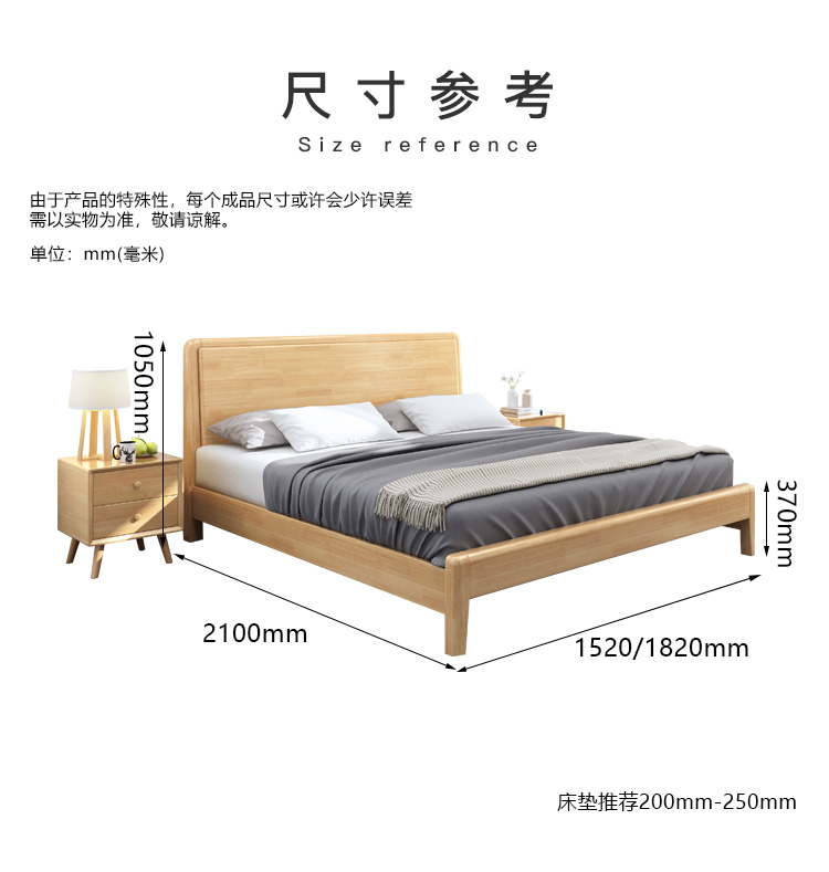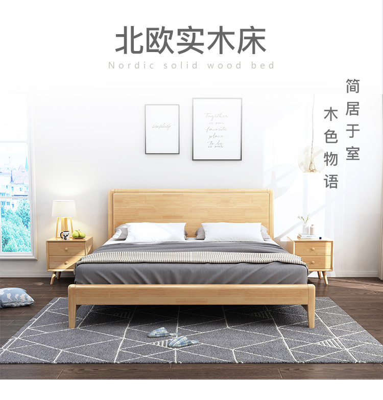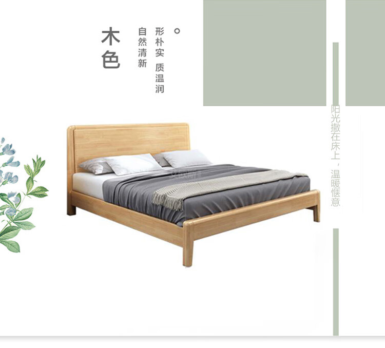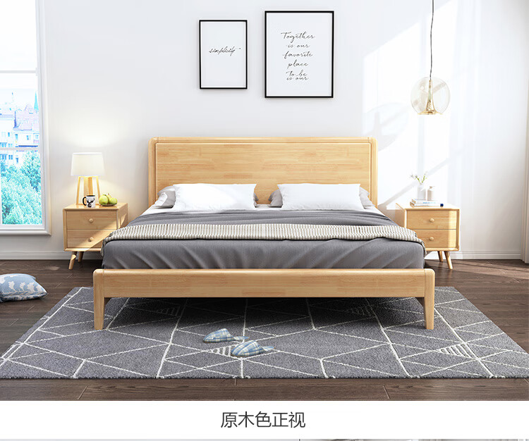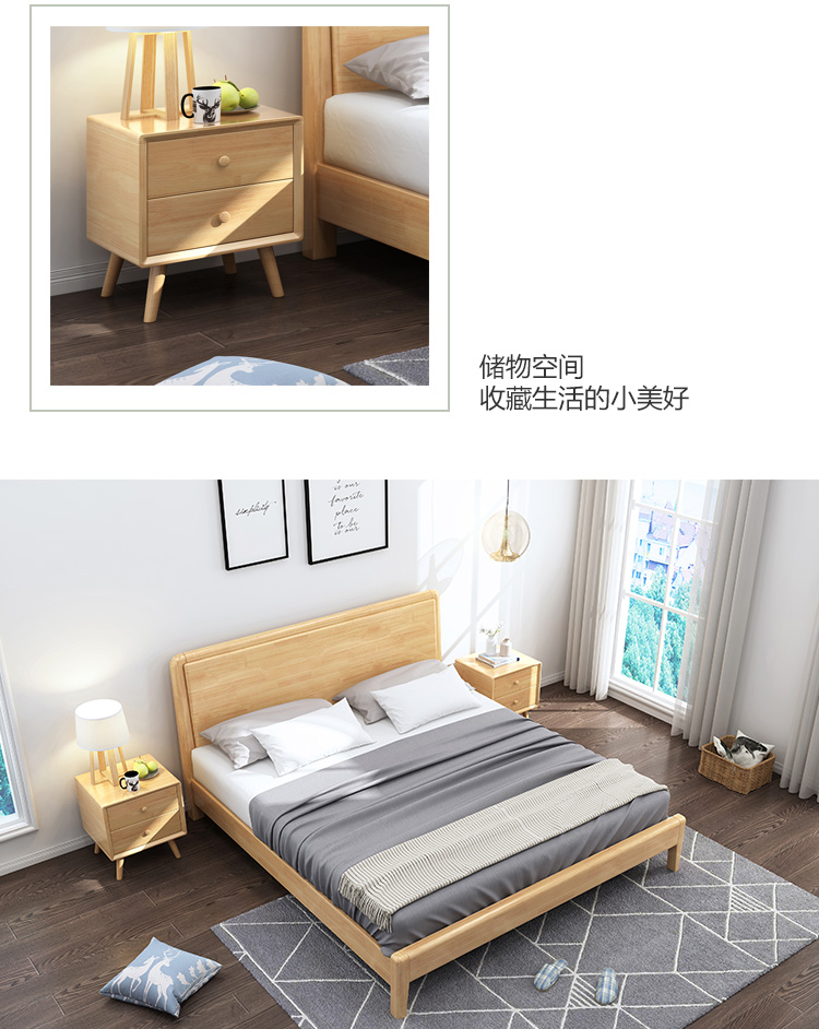 商品名称:中伟 ZHONGWEI SMC-311-3 实木床卧室 简约 原木色 2000×1500
