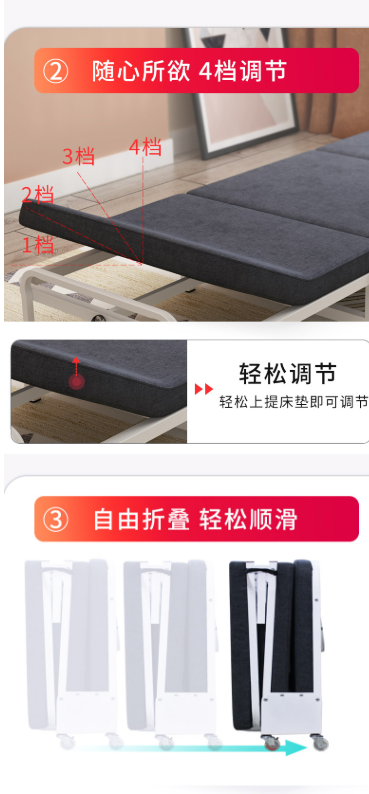 商品名称:三强 SANQIANG ZDC-01 折叠床 多档靠背调节 65CM