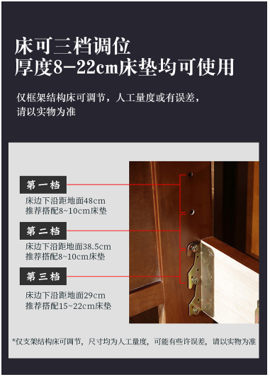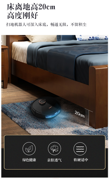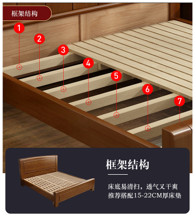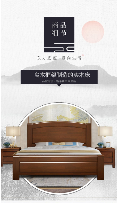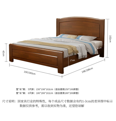 商品名称:尊禾 实木中式双人床 【胡桃色-床+床头柜×2+棕垫×1】 【进口实木-1500×1900不可储物】