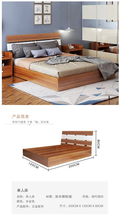 商品名称:双箭 SJ-920 板式单人床 200×120×120CM 木纹色