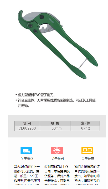 商品名称:长鹿 CL609963 63MM PVC管子割刀