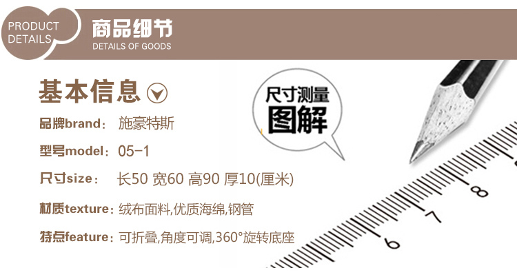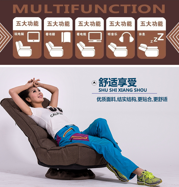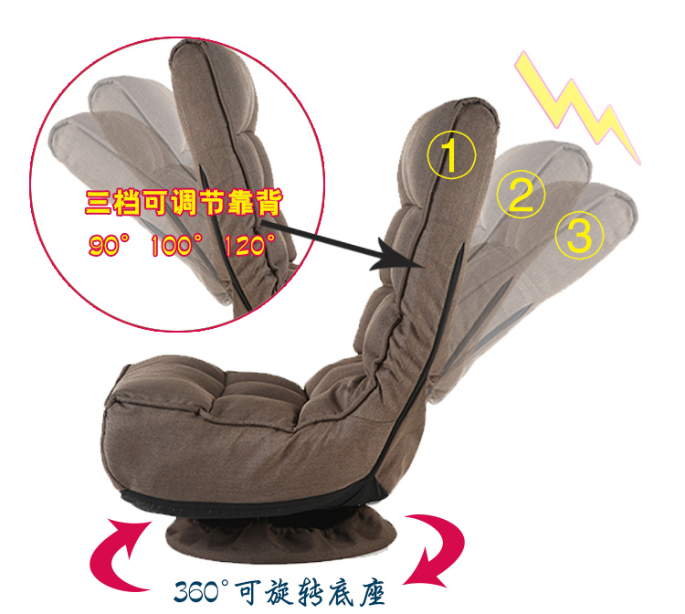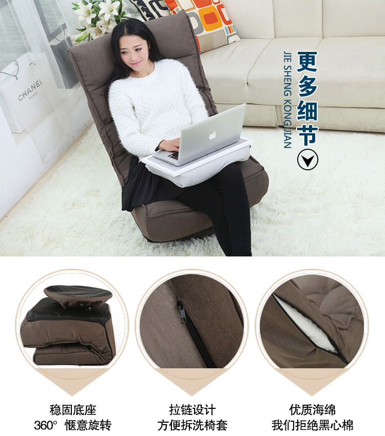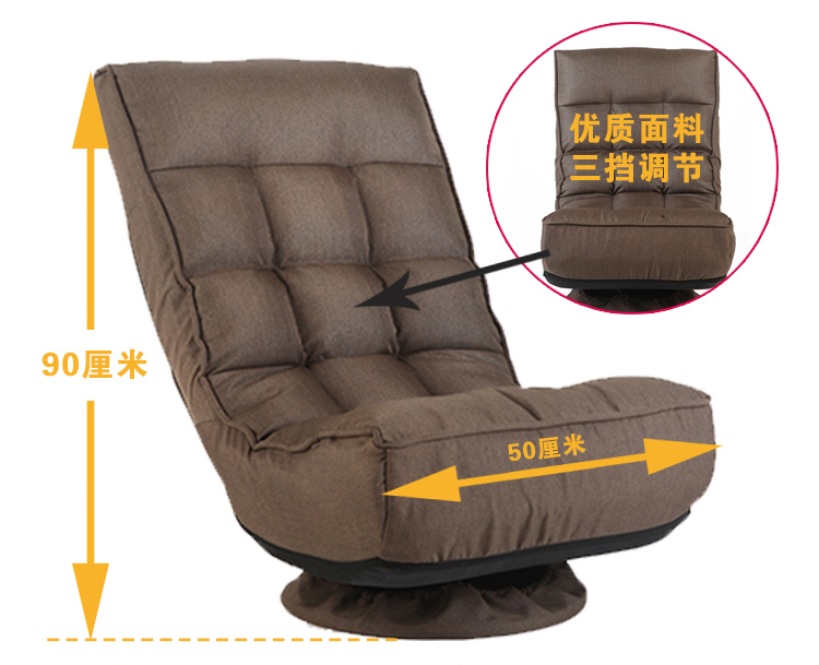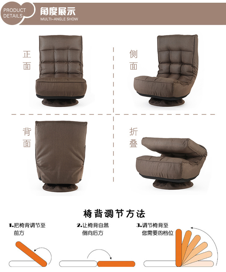 施豪特斯沙发床懒人沙发三档角度调节休闲沙发360度旋转HLC-05-1采用高品质钢管、绒布面料,优质海绵工艺,人性化设计,产品设计款式新颖,坐感舒适,可做榻榻米沙发使用,尺寸为50X60X90CM;折叠方便,轻松放置在家里角落,阳台休闲椅子。亦可放在办公室午休小憩,不用时方便收纳。