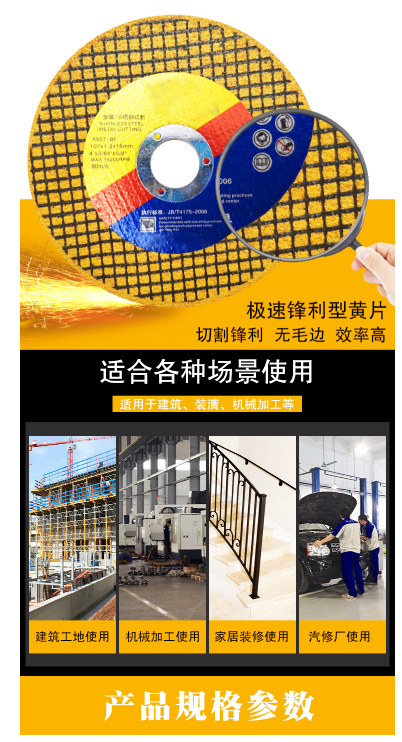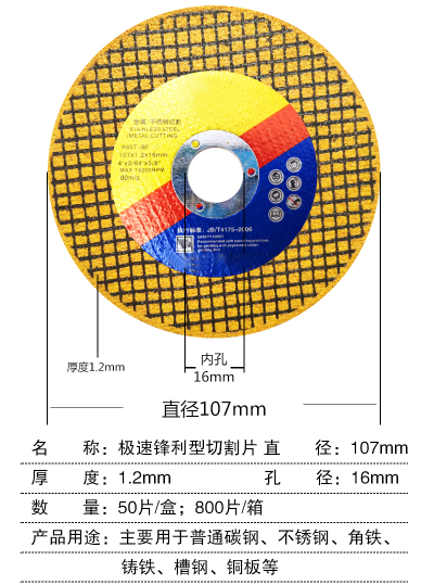 商品名称:捷诺立 JNL N14455 角磨机砂轮片 107×1.2×16 黄色 25片