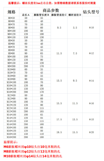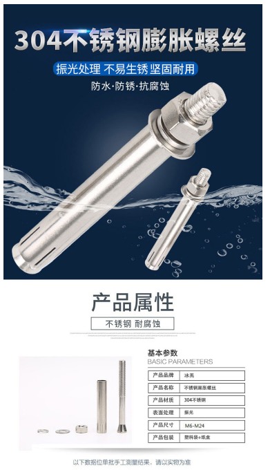 商品名称:冰禹 BYJZ-1352 304不锈钢膨胀螺栓盒装 M12×80 30个