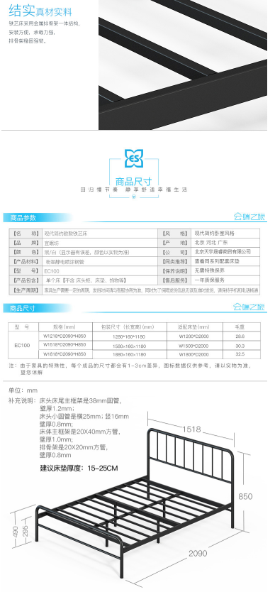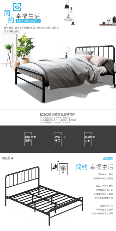商品名称:宜眠坊 ESF EC100 铁架床 (不含床垫) 1.5米 黑色