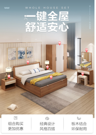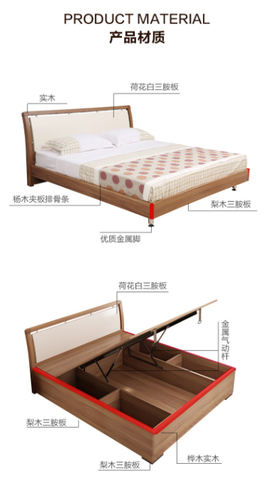 A家 A002-180 家具 床 现代简约板式床 实木床 1.8米双人床