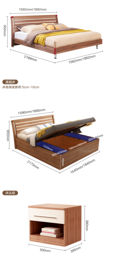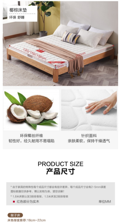 商品名称:A家 A001-150 家具 床 实木床 现代简约卧室双人床 1.5米架子床 床*1+床垫*1