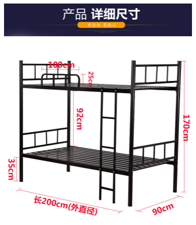 商品名称:洛克菲勒 LUO KE FEI LE 成人双层单人铁架床 H1700×W1200×L2000MM (铁床板) 黑色