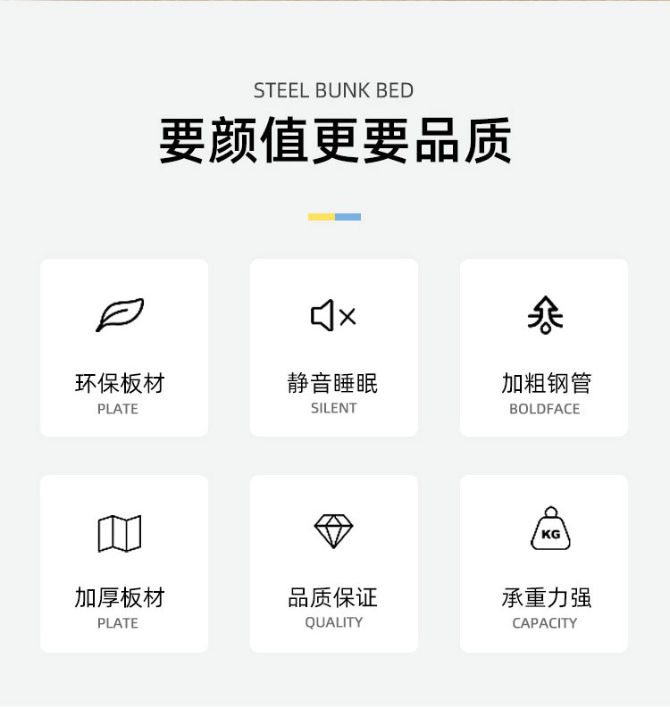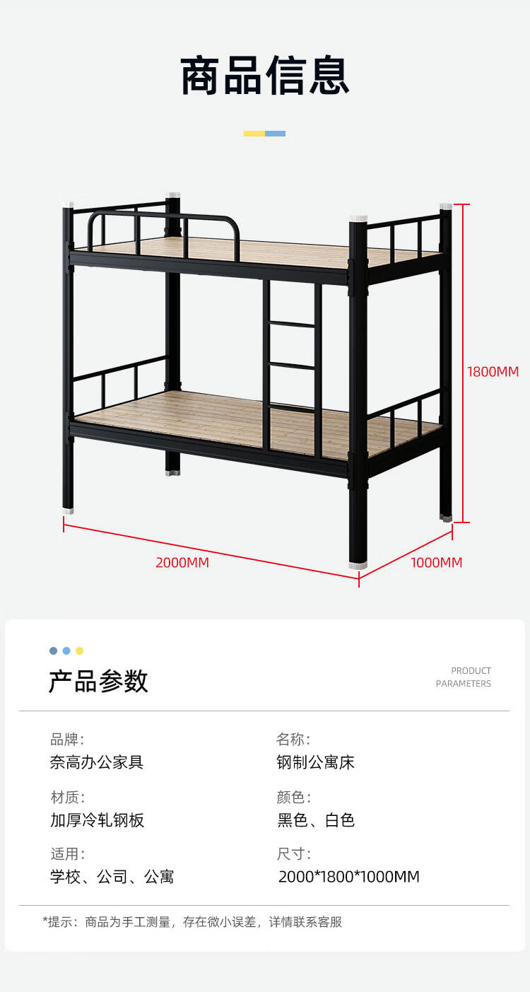 商品名称:奈高 双层床 钢制双层上下铺组合床 部队床 学校宿舍高低床 员工床 款 7