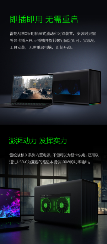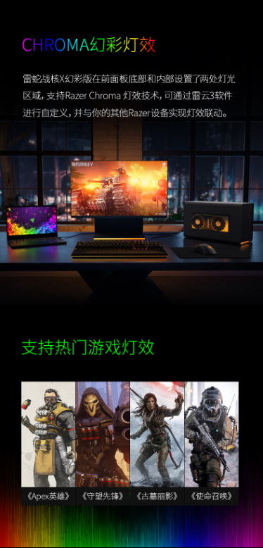 雷蛇 RAZER 战核X幻彩版 外置显卡 适用苹果MACBOOK系列,联想拯救者Y9000,联想YOGA C940,戴尔XPS13,戴尔G7等雷电3接口机型