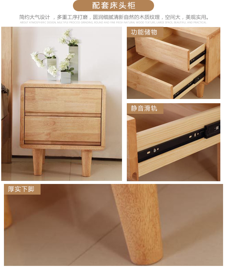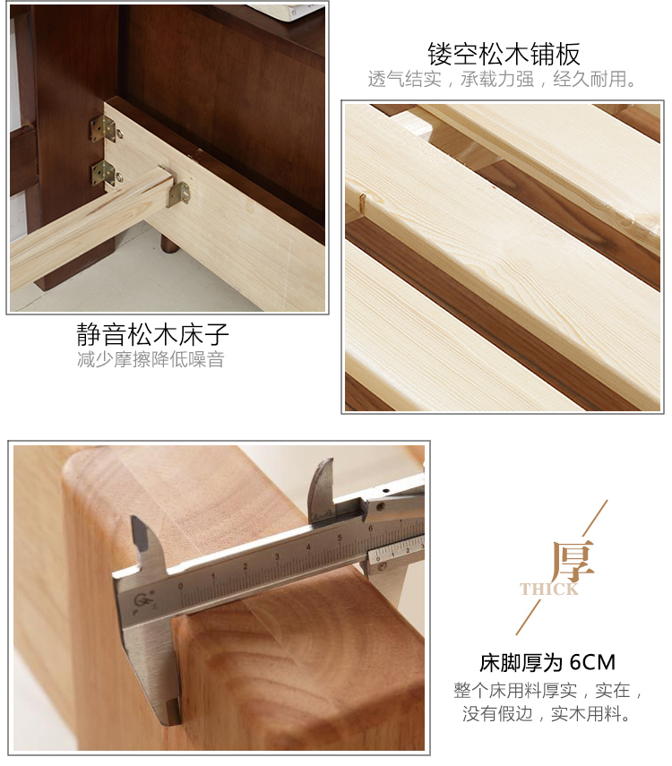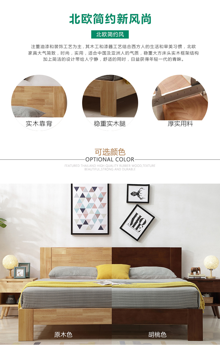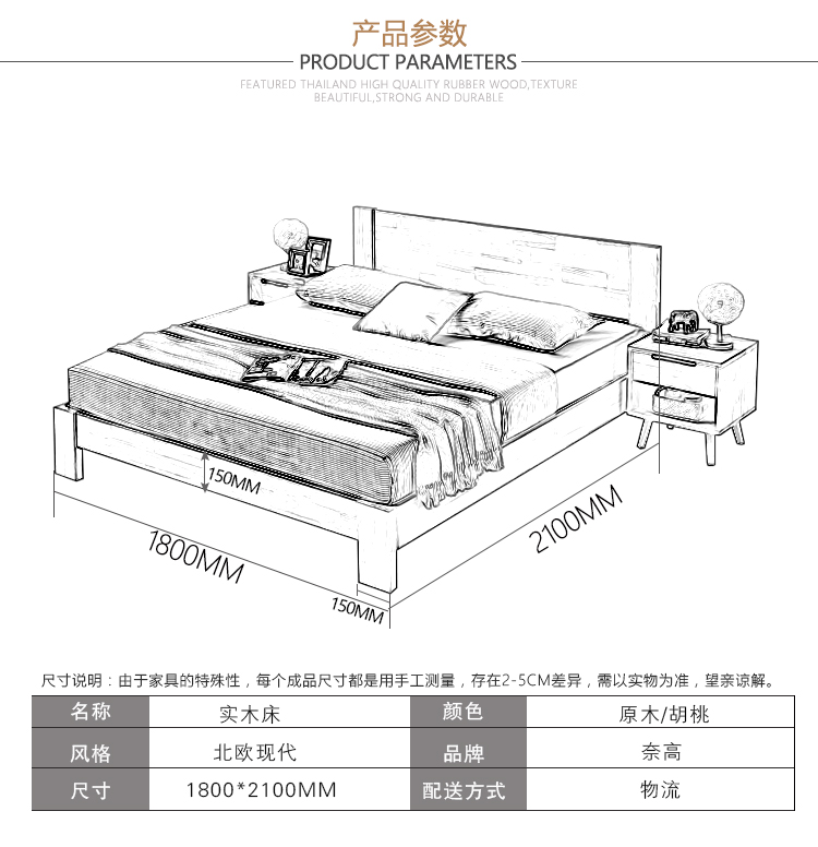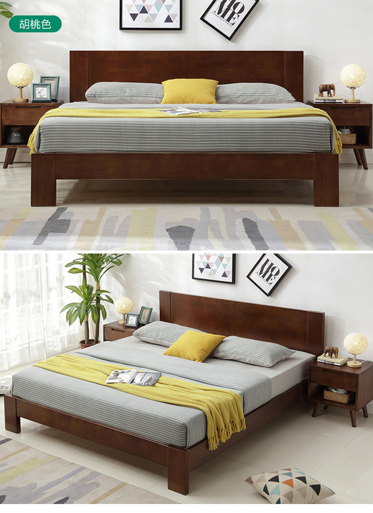 商品名称:奈高 AA61 北欧实木时尚双人床 家用储物日式简约卧室单人公寓床 1.8米 *2米 胡桃色