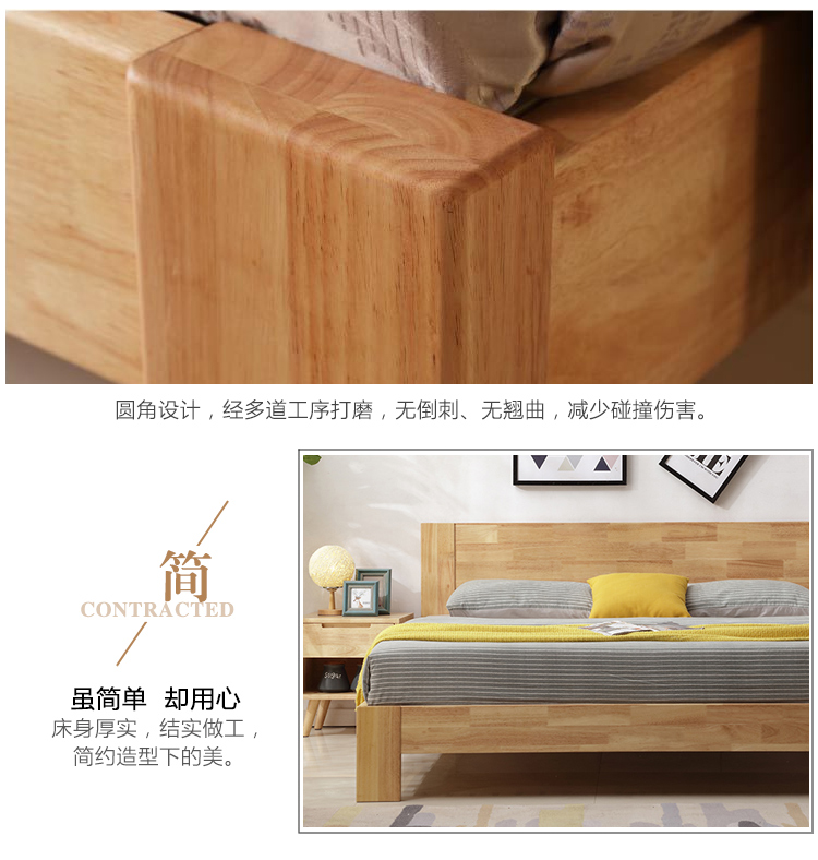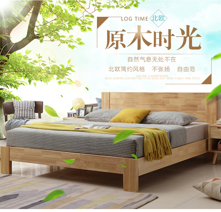 奈高 AA61 北欧实木时尚双人床 家用储物日式简约卧室单人公寓床 1.8米 *2米 胡桃色