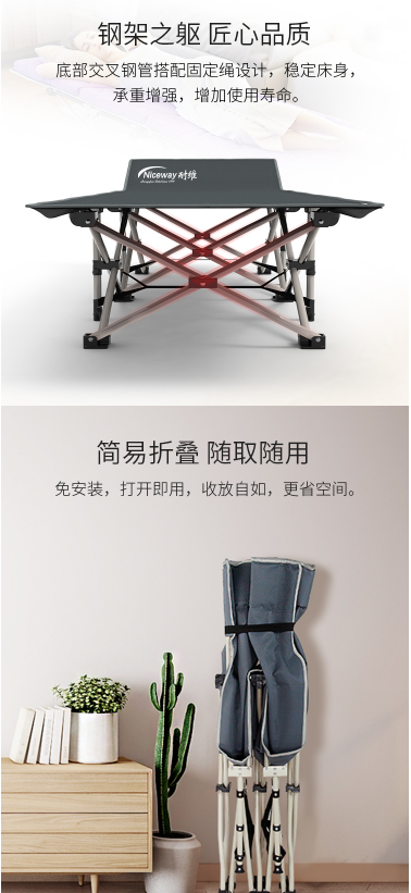 耐维 NICEWAY 折叠床方管折叠床单人睡椅办公室简易午睡午休床躺椅