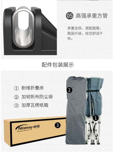 商品名称:耐维 NICEWAY 折叠床方管折叠床单人睡椅办公室简易午睡午休床躺椅